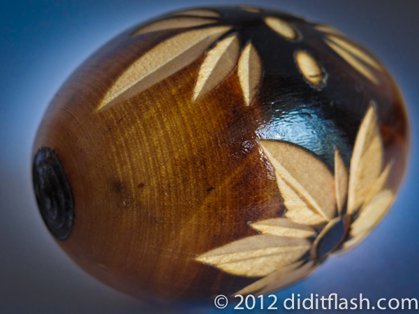 Day 113 – Pisanki is the Polish name for decorated Easter eggs. (Pisanka is singular).  I have several colorful ones, but this is the only one I have that is carved.